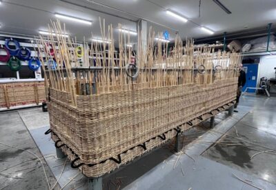 Kôš typu K80 pre 24 osôb je ručne pletený z prírodného ratanu, ktorý sa používa práve pre jeho ideálne mechanické vlastnosti – je pevný, no zároveň pružný, čo umožňuje absorbovať energiu pri pristátí bez poškodenia konštrukcie. Kôš je rozdelený do viacerých samostatných kójí, čím sa zabezpečuje rovnomerné rozloženie hmotnosti a vyšší komfort pasažierov.